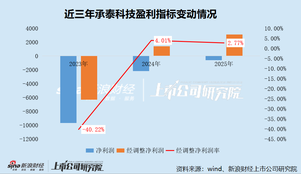 不过,若剔除股份支付及赎回负债的影响,承泰科技已实现盈利,但净利润率仍处于较低水平。2023年至2025年,公司经调整净利润分别为-6295.8万元、1395.3万元、3113.3万元,经调整净利润率分别为-40.22%、4.01%、2.77%。