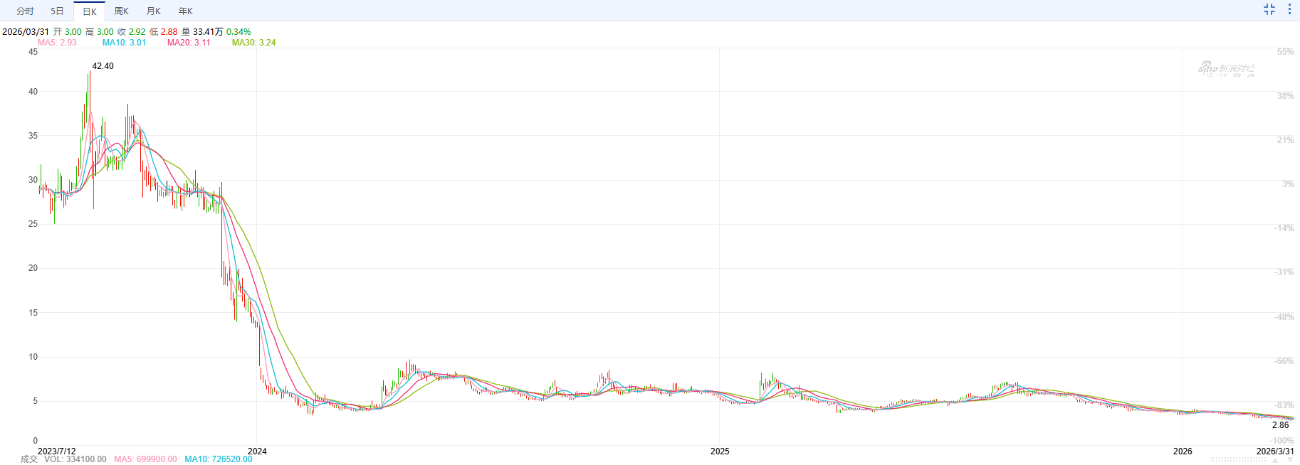 资本市场对这历史性的一刻却并不买账。业绩发布当日,Keep的股价收跌0.3%,随后连续四个交易日一路走低,期间一度触底至2.86港元/股,不足发行价的十分之一。截至发稿日收盘,Keep的市值仅为15.35亿港元,较2023年最高点蒸发92.7%,年初至今的日均换手率低至0.2%。