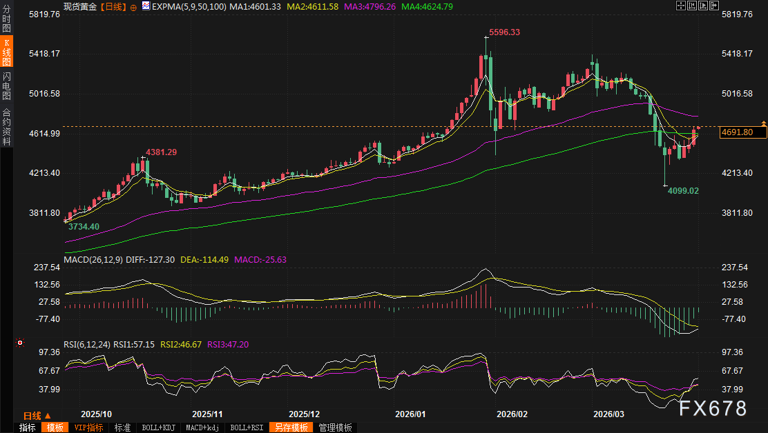 (现货黄金日线图,来源:易汇通)北京时间07:42,现货黄金现报4691.80美元/盎司。