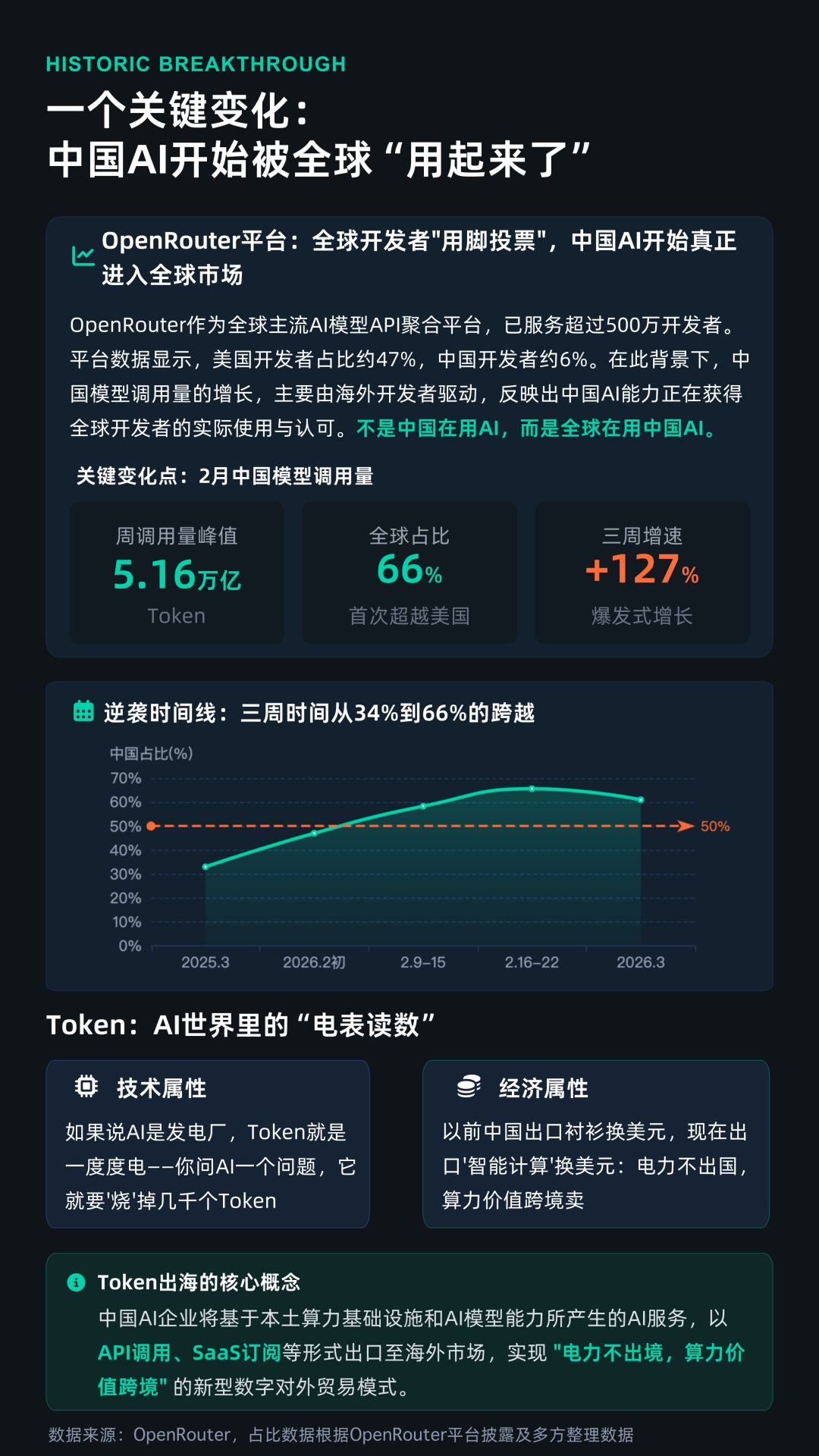 Token出海的本质,并非简单的软件或模型输出,而是将“电力+算力+模型+应用”打包形成的一整套AI服务能力,通过API调用、SaaS订阅等形式向海外输出,实现“电不出境、价值跨境”的新型外贸模式。这一模式的底层逻辑,类似于传统制造业中的“出口商品换美元”,但在AI时代,中国出口的是“计算能力”,而Token则成为计价单位。
