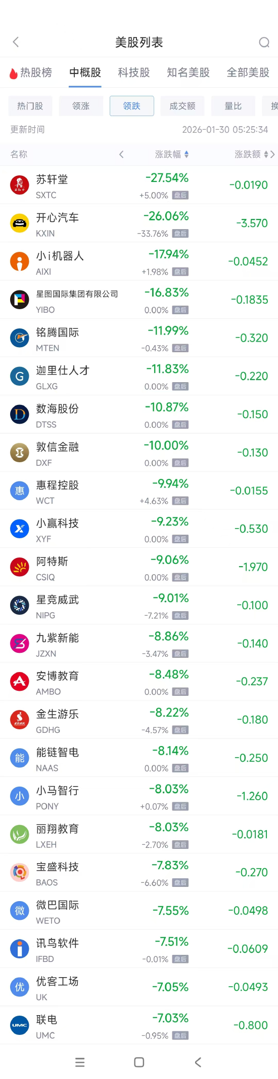 1月30日热门中概股涨跌不一 蔚来涨3.92%,联电跌7.16%