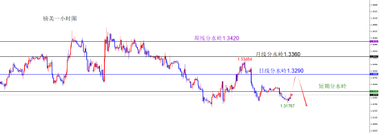 关键分水岭1.3220区域,短线关注1.3290区域承压