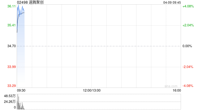 速腾聚创(02498)盘初涨超4%,截至发稿,股价上涨3.86%,现报36.04港元,成交额9441.22万港元。