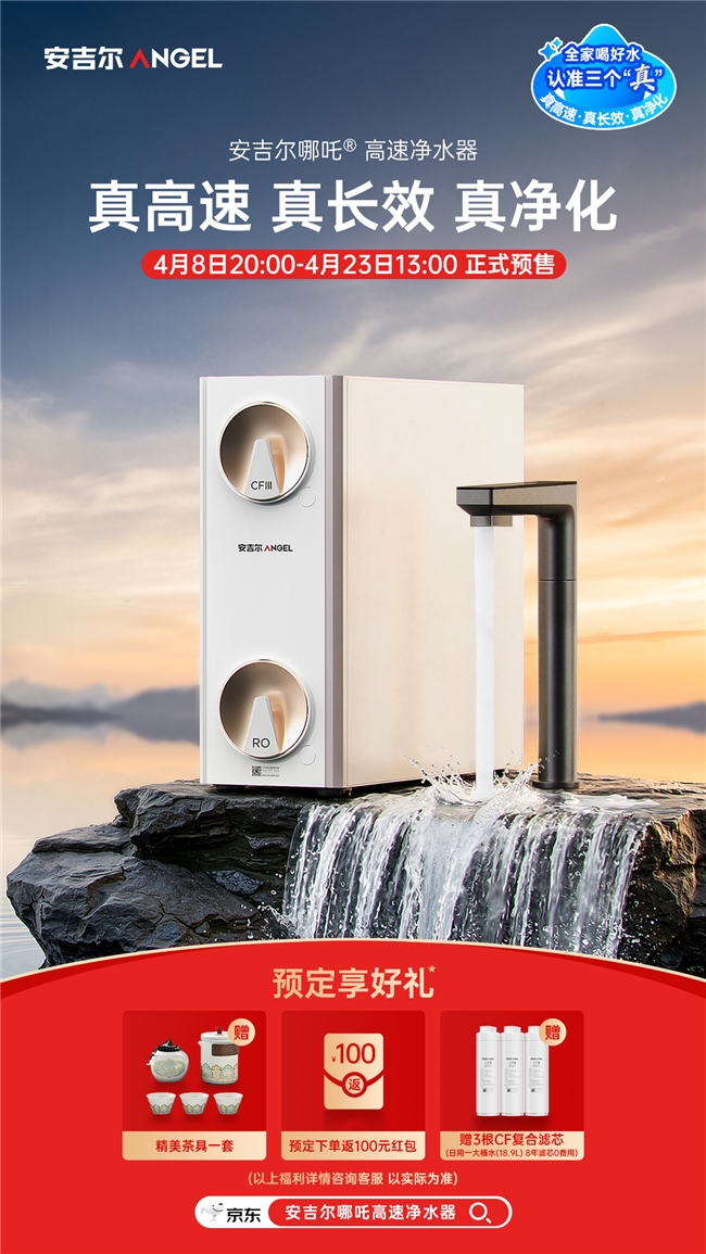 近日,安吉尔重磅推出哪吒高速净水器,凭借真高速、真长效、真净化三大核心优势,直击长期存在的接水慢、滤芯寿命短、后置活性炭导致细菌滋生三大行业痼疾,打破净水行业的不可能三角,重新定义了家庭净水器的选购标准。安吉尔哪吒高速净水器将于4月23日正式首发,现已于天猫、京东、抖音平台全面开启预售。