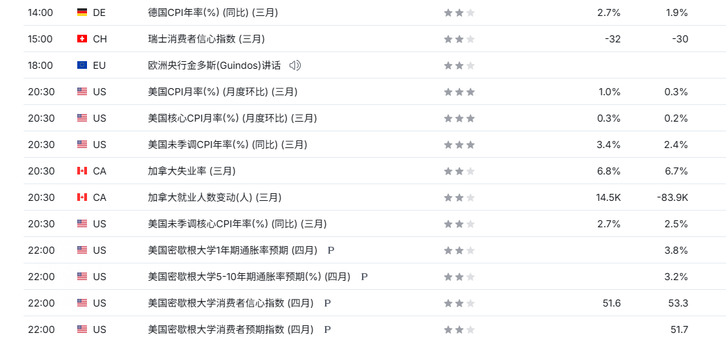周四(4月10日)周五,美国将公布3月消费者价格指数(CPI)报告。市场普遍预计,通胀将明显上升,主要受能源价格飙升以及贸易政策因素推动。尽管周二宣布的为期两周的停火一度缓解油价上涨压力,但整体来看,上半年美国通胀仍可能维持在较高水平。根据市场预期,3月整体通胀料将录得环比上涨0.9%,为2022年6月以来最大单月涨幅。剔除食品和能源后,核心通胀预计环比上涨0.3%,同比上涨2.7%,也较前月小幅回升。从更广泛的产业链来看,能源冲击正在向各个领域扩散。在类似石油市场冲击下,航空燃料、钢铁、铝、天然气、化肥和塑料等大宗商品价格最容易上涨,这种成本压力已逐步传导至多个行业。汽车制造依赖钢铁、铝和塑料,新车价格因此被推高,并进一步影响二手车市场。数据显示,二手车价格已升至近三年来最高水平。航空业同样受到冲击,多家航空公司开始削减航班,并上调托运行李费用以对冲燃料成本上升。农业领域方面,化肥成本上涨将进一步推高食品价格,使通胀压力从加油站延伸至超市。美元指数跌至98.80;非美货币分化,澳元兑美元回落至0.706,欧元兑美元盘整至1.169附近,离岸人民币到达6.82。现货黄金反弹至4762美元附近,现货白银来到75.80美元附近。原油反弹至98.40美元附近。