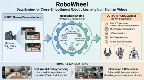 近日,枢途科技宣布,其联合清华大学、香港中文大学等机构完成的最新研究成果――《RoboWheel: A Data Engine from Real-World Human Demonstrations for Cross-Embodiment Robotic Learning》已被CVPR 2026正式录用。该研究提出了一种端到端数据引擎,使机器人能够直接从真实世界的人类操作视频中学习,为具身智能的数据获取路径提供了全新范式。