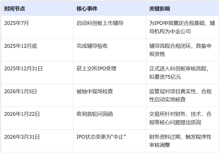 2026年3月31日,上交所官网一则“中止”公告,让蓝箭航天这只被寄予“商业航天第一股”厚望的标的,突然按下IPO进程暂停键。这场拟募资75亿元的资本冲刺,不仅因财务资料过期触发常规流程调整,更因保荐团队的突发人事变动、行业监管新规落地,以及保代间的争议纠纷,成为2026年A股科创板最受关注的事件之一。