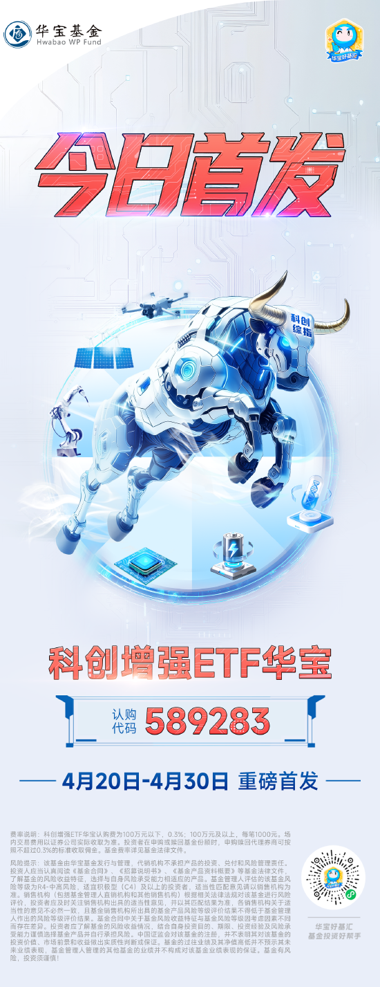 继创业板综增强ETF华宝、沪深300指增ETF华宝之后,今日(4月20日),又一科创硬科技实力派——科创增强ETF华宝(认购代码:589283)火热开售。