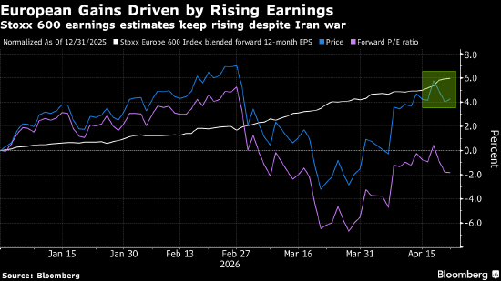 尽管地缘政治风险仍存,但强劲的企业盈利、人工智能交易的回暖以及整体仍具韧性的经济支撑股市表现。汇编数据显示,在已公布一季度业绩的标普500指数成份股中,约81%的公司盈利超出分析师预期。