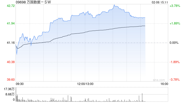 万国数据-SW午后涨近3% 小摩重申“增持”评级