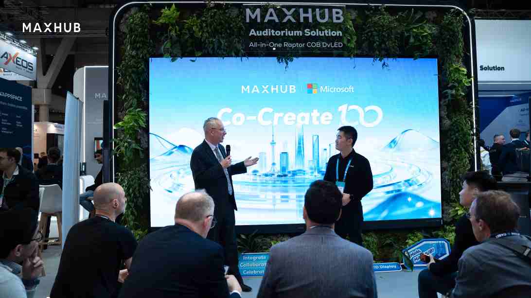 展会现场,MAXHUB与微软联合发起“Co-Create 100”全球计划,标志着其成功经验的国际化拓展。