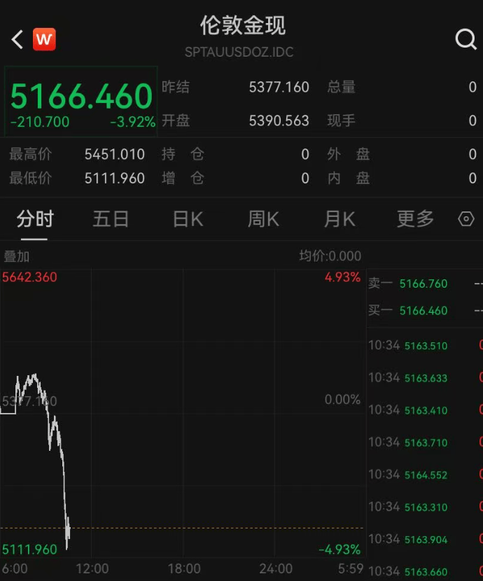 金银再次大跳水,现货黄金失守5200美元,黄金股集体跌停,多家品牌金饰克价大幅回调