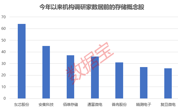 存储大周期下,概念股获得机构高度关注。统计显示,年初以来共有13只存储股获机构调研,其中东芯股份、安集科技(688019)、佰维存储等7股机构调研家数均在20家以上。