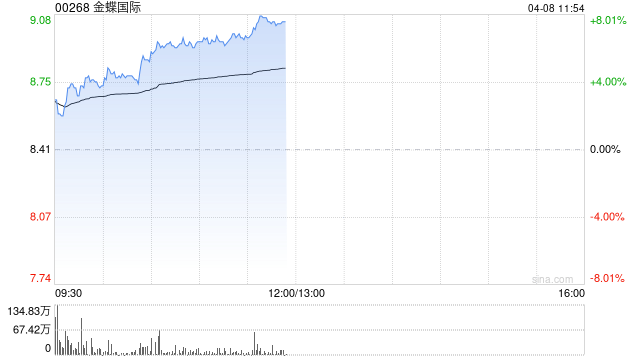 金蝶国际(00268)盘中涨近7%,截至发稿,股价上涨7.61%,现报9.05港元,成交额2.02亿港元。