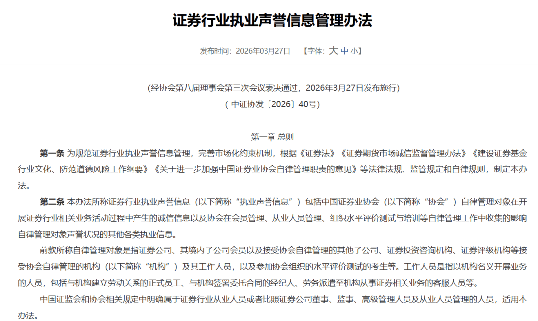 蓝箭航天IPO推进期间,中国证券业协会于2026年3月27日发布修订后的《证券行业执业声誉信息管理办法》,这一新规落地与保荐团队信息查询变化形成呼应,深刻影响证券行业执业生态。