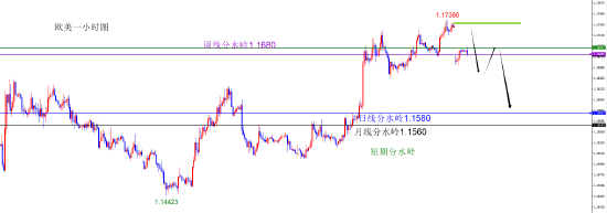 关键分水岭1.1690-1.1700区域,日内短线1.1730区域承压