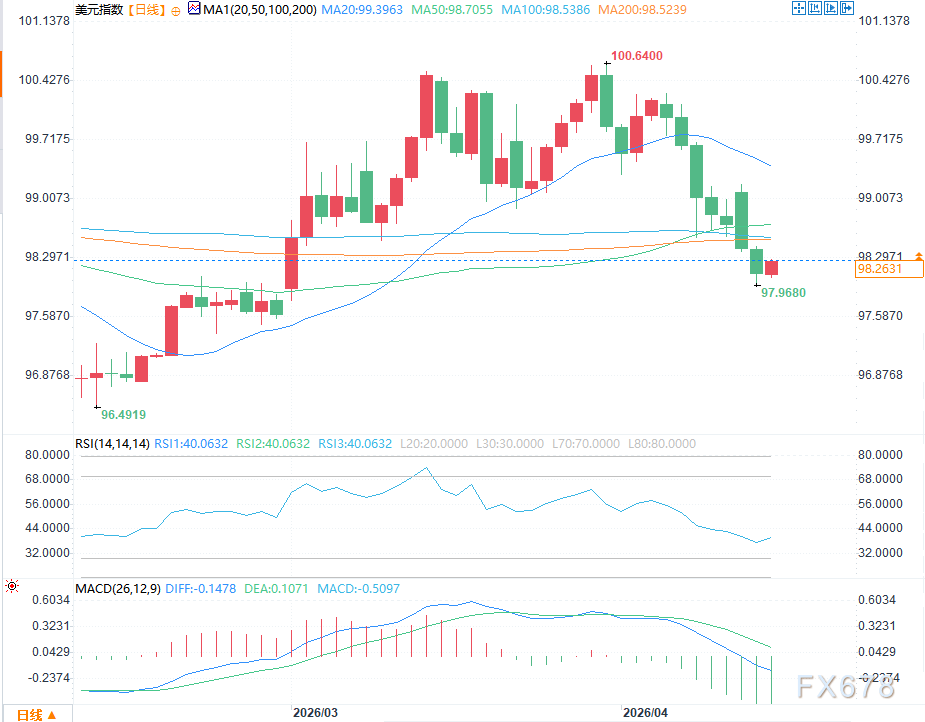 从近期波动区间来看,美元指数的运行范围为96.491至100.640。目前指数正处于该区间的50%中分位附近徘徊,这种围绕关键分位的震荡整理属于正常市场反应,投资者对这一水平的多空博弈将决定今日盘面走向。