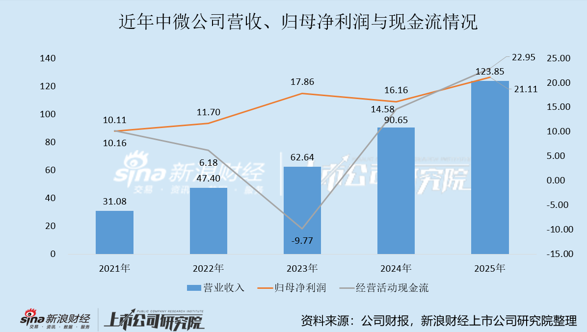 2025年,中微公司实现营业收入123.85亿元,同比高增36.62%,实现归母净利润21.11亿元,同比增长30.69%。